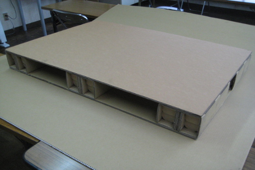 段ボール製パレットで、1way商品の発送に使用します。材質、構成部品の変更により、商品に合わせた設計が可能です。